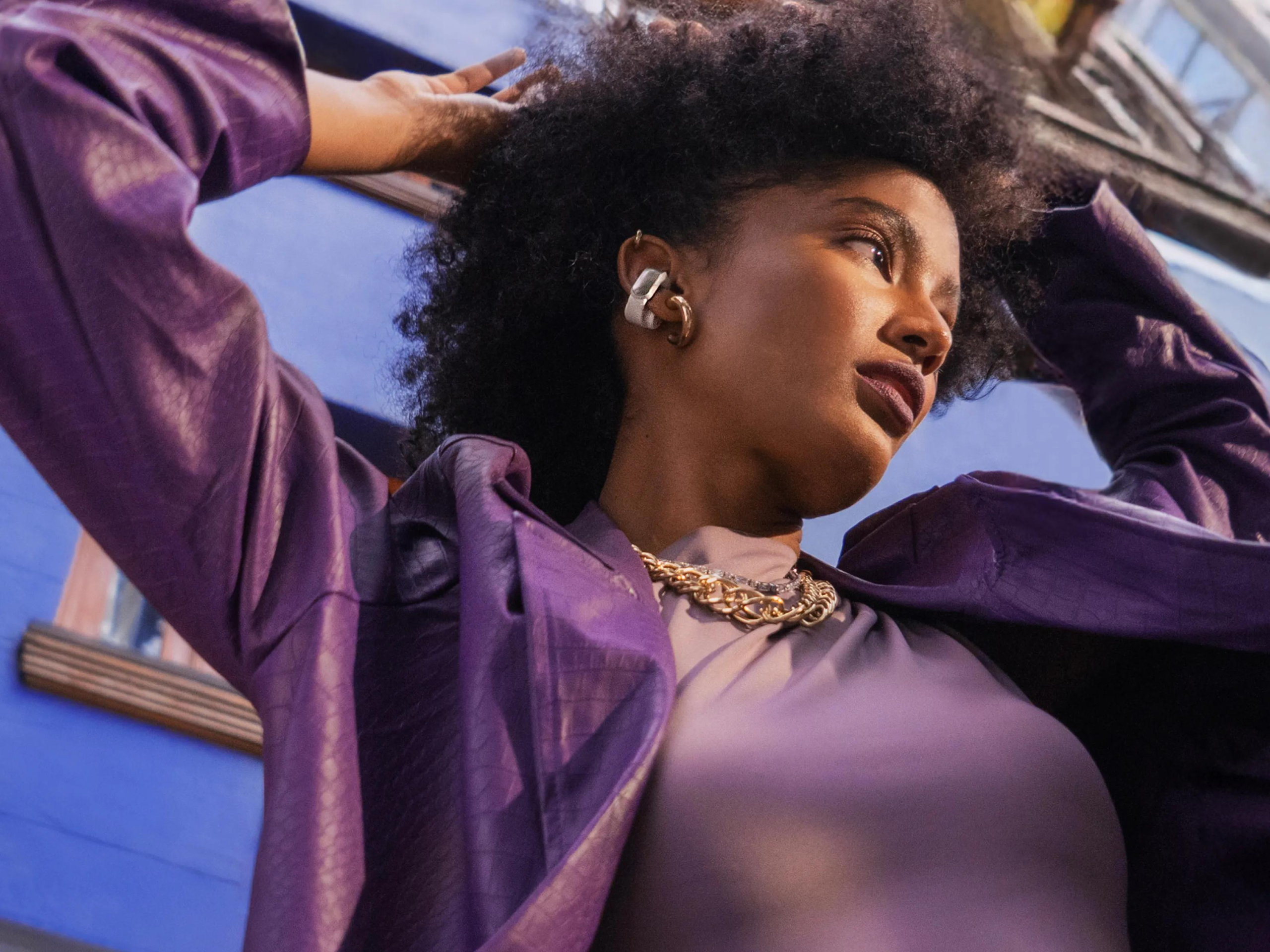 Ultra Open Earbuds feature a brilliant combination of innovative open-ear design, incredible audio, and all-day comfort. With a cuff-like fit, Ultra Open Earbuds leave your ears open to hear the world around you while OpenAudio technology delivers rich, private sound.